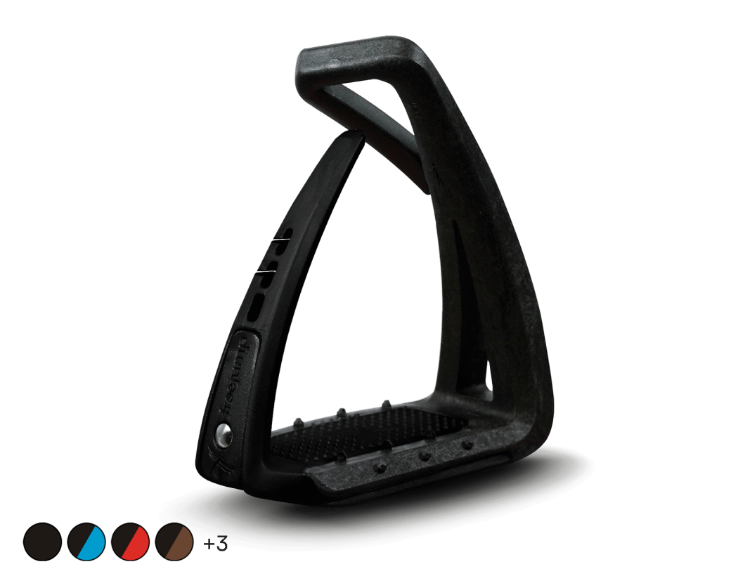 Die Monobranchen-Technologie, kombiniert mit Elastollan®-Überformung, reduziert die auf jeden Steigbügel ausgeübte Kraft um das Dreifache und entlastet damit die Gelenke des Reiters und den Rücken des Pferdes.